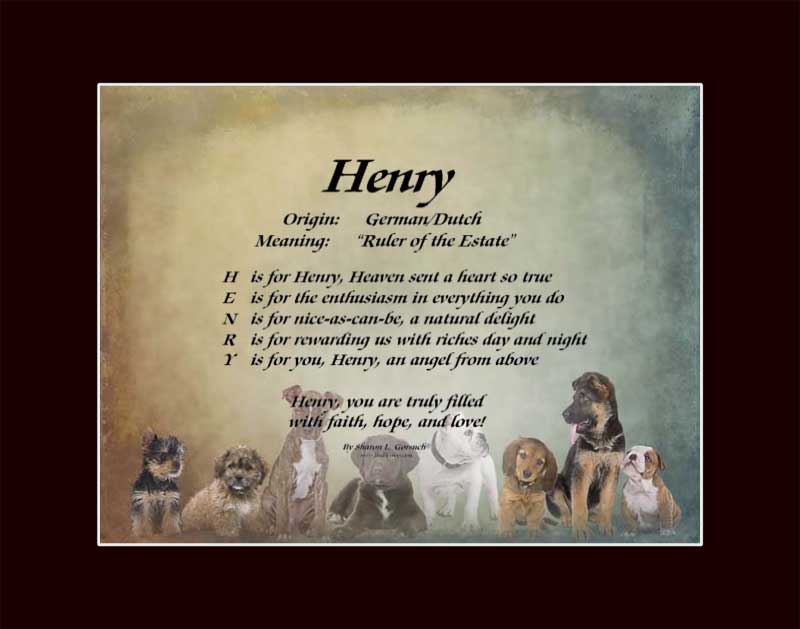 Is your Henry the “ruler of the estate” (or would like to be?)? I’m sure of it! I love to hear from my customers about how the meanings of names really do match their namesakes!