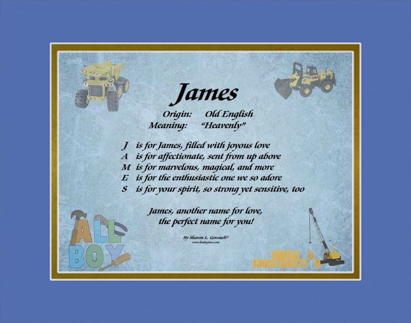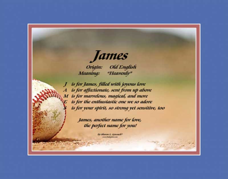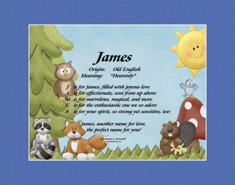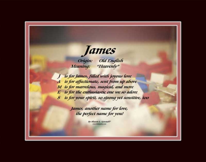 Thank you for reading my blog about James! Have fun perusing my website, looking up the names of your family, friends and loved ones – and in the rare event I don’t have the name you’re looking for, I am happy to write it for you at no extra charge!